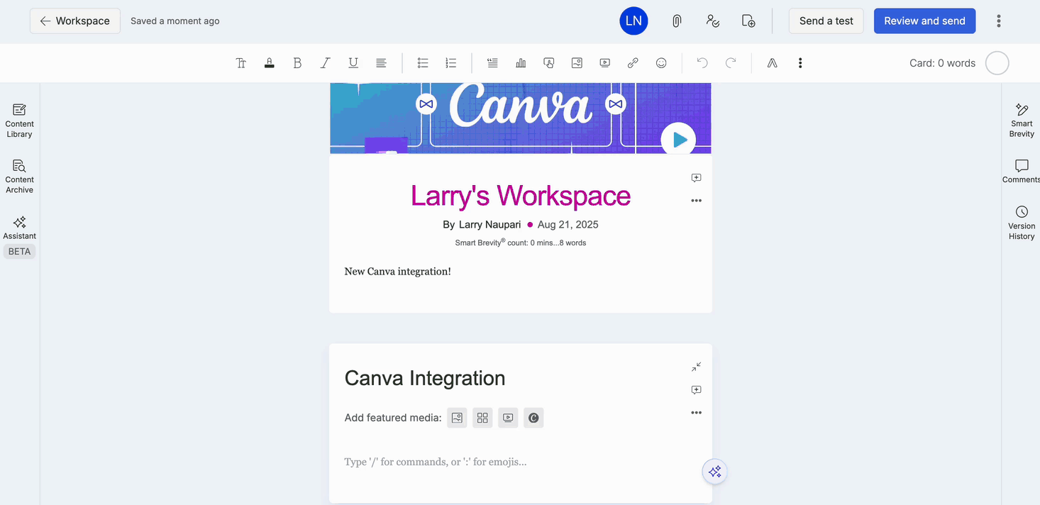 The Canva integration streamlines your workflow by enabling direct image uploads from your Canva account to HQ. This eliminates the extra steps of downloading and re-uploading, saving you time.
