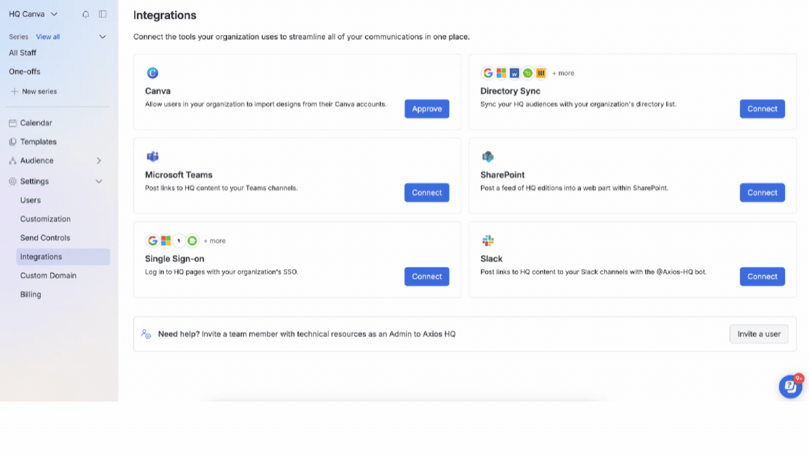 Even though an Admin enables the Canva connection, each User will still need to connect their own Canva account.